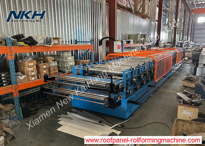 Una máquina de moldeado de rodillos de doble hoja suele estar compuesta por un descolador, dos guías de alimentación de entrada con corte de entrada opcional, dos sistemas de moldeado de rodillos,un marco de corte con dos matrices de corte (se equipará con un prensado hidráulico siempre que esta máquina de moldeado de rodillos de doble nivel esté diseñada para producir tejas de techo vidriadas metálicas)La máquina de formación de rollos de doble capa dispone de un sistema de transmisión, un sistema de control y tablas de despliegue.Para clientes europeos, hay una cubierta de seguridad y un sello CE en el cuerpo de la máquina.